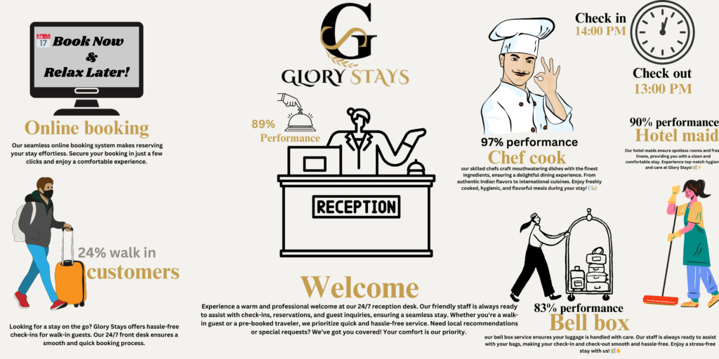 At Glory Stays, we believe that every stay should be a memorable one, filled with comfort, luxury, and convenience. We go beyond just providing a room; we offer an experience tailored to meet your unique needs. Whether you’re visiting for business, leisure, or a special occasion, our comprehensive range of services is designed to ensure that your stay with us is extraordinary.